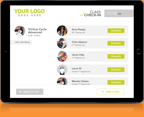 Free your front desk and instructors and let your members check themselves in class with our check-in app. Members can add themselves to a class and see which spot they booked.